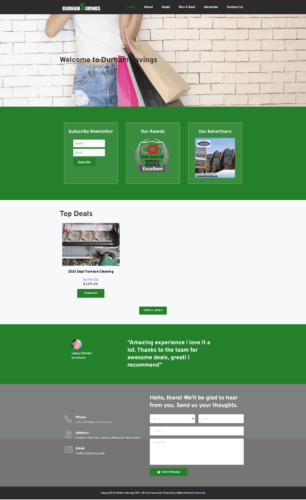 Durham Savings is the place to start in Durham Region when you want to buy just about anything, anytime, anywhere. Durham Savings offers consumers a vast marketplace of unbeatable deals from around the Durham Region. Shoppers discover the best local communities have to offer on the web or on mobile with Durham Savings, enjoy vacations with Durham Savings Getaways, and find a curated selection of electronics, fashion, home furnishings and more with Durham Savings Goods. Durham Savings is redefining how traditional small businesses attract, retain and interact with customers by providing merchants with solutions that help businesses grow and operate more effectively. To search for great deals or subscribe to Durham Savings emails, visit durhamsavings.com. To learn more about the company’s merchant solutions and how to work with Groupon, visit our Merchant Section Here.