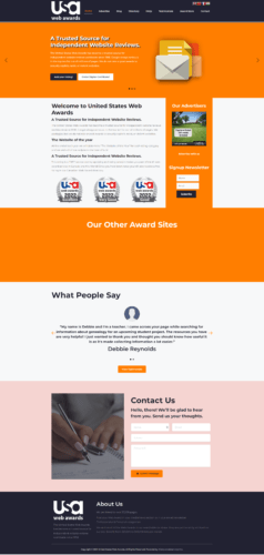 The United States Web Awards has become a trusted source for independent website reviews worldwide since 1998. Google always ranks us in the top ten list out of millions of pages. We apologize, but we do not rate or post awards to sexually explicit, racist, or violent websites.