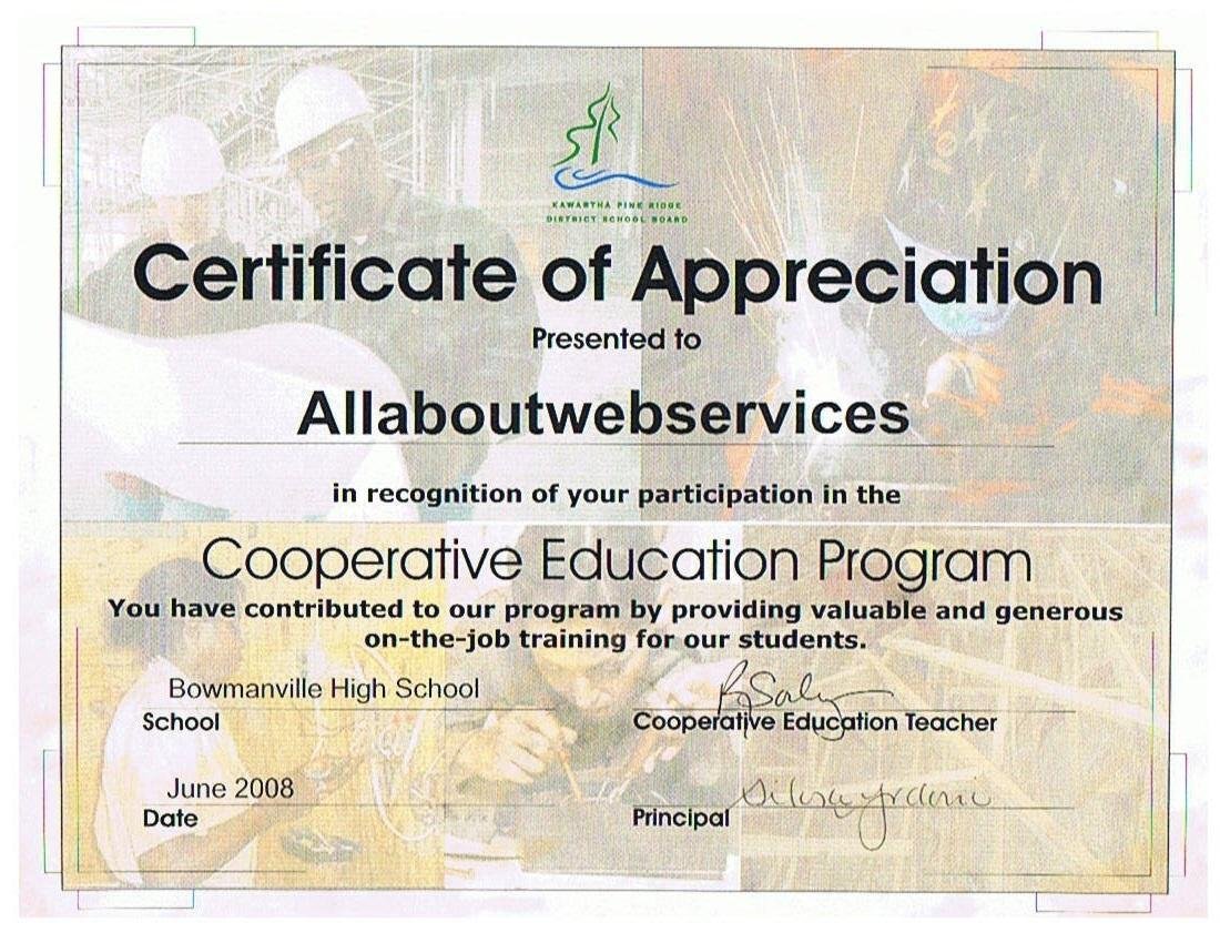 Thank you for the opportunity to complete my placement at All About Web Services. It was a great experience and I learned a lot during my 4 weeks. I know that I started at a hectic time with the servers being down, but even that was a great learning experience watching how everything was handled and the work that went into getting everything back up and running again. Thank you again for the opportunity and experience.